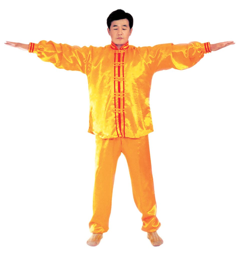 Thế dự bị: Toàn thân thả lỏng, lỏng nhưng không oải, hai chân đứng rộng bằng vai, đứng thẳng tự nhiên, hai chân hơi chùng một chút, đầu gối và háng trạng thái lỏng tự nhiên; hàm dưới hơi thu, lưỡi đặt hàm trên, hàm răng hơi hở một tí, môi miệng ngậm lại, hai mắt hơi nhắm, nét mặt mang ý an hoà.