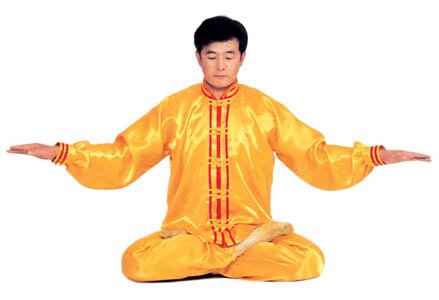 Hai tay kết ấn: Xếp bằng đả toạ, toàn thân thả lỏng, lỏng nhưng không oải, lưng ngay cổ thẳng, hàm dưới hơi thu, lưỡi đặt hàm trên, hàm răng hơi hở một tí, môi miệng ngậm lại, hai mắt hơi nhắm, tâm sinh ‘từ bi’, nét mặt mang ý an hoà. Hai tay “kết ấn” ở chỗ bụng dưới, dần dần nhập tĩnh (như hình 5.1).
