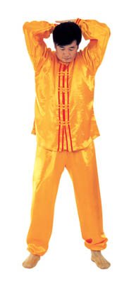 Kim hầu phân thân[6]: Bắt đầu từ thế “hợp thập”. Hai tay từ vị trí trước ngực tách khỏi nhau và duỗi sang hai bên, cùng với vai tạo thành hình chữ “nhất”, toàn thân dần dần căng thẳng, đầu dựng lên, chân đạp xuống, hai tay dùng lực căng sang hai bên, lực kéo ra bốn phía (như hình 1.10), kéo căng khoảng 2~3 giây đồng hồ, rồi toàn thân lập tức buông chùng, hai tay trở về “hợp thập” trước ngực.