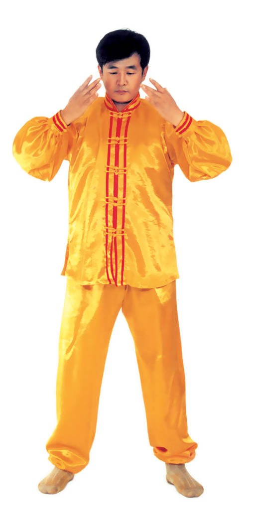Thế dự bị: Toàn thân thả lỏng, lỏng nhưng không oải, hai chân đứng rộng bằng vai, đứng thẳng tự nhiên, hai chân hơi chùng một chút, đầu gối và háng trạng thái lỏng tự nhiên; hàm dưới hơi thu, lưỡi đặt hàm trên, hàm răng hơi hở một tí, môi miệng ngậm lại, hai mắt hơi nhắm, nét mặt mang ý an hoà.